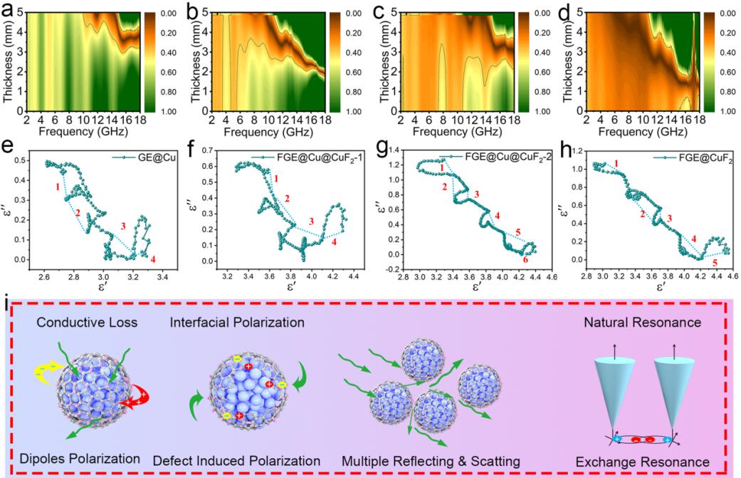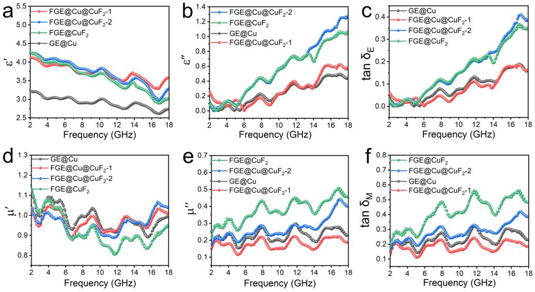 图3. GE@Cu及其氟化产物的电磁参数表征