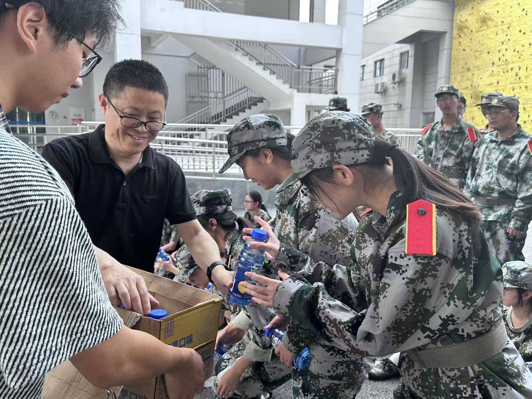 领导和老师们将一份份心意传递到学生手中,细致询问训练情况,叮嘱大家科学参训、注意防暑。这份温暖如暖流般涤荡心田,令同学们斗志昂扬,亲切的关怀化作澎湃动力,点燃了全场同学的训练热情。