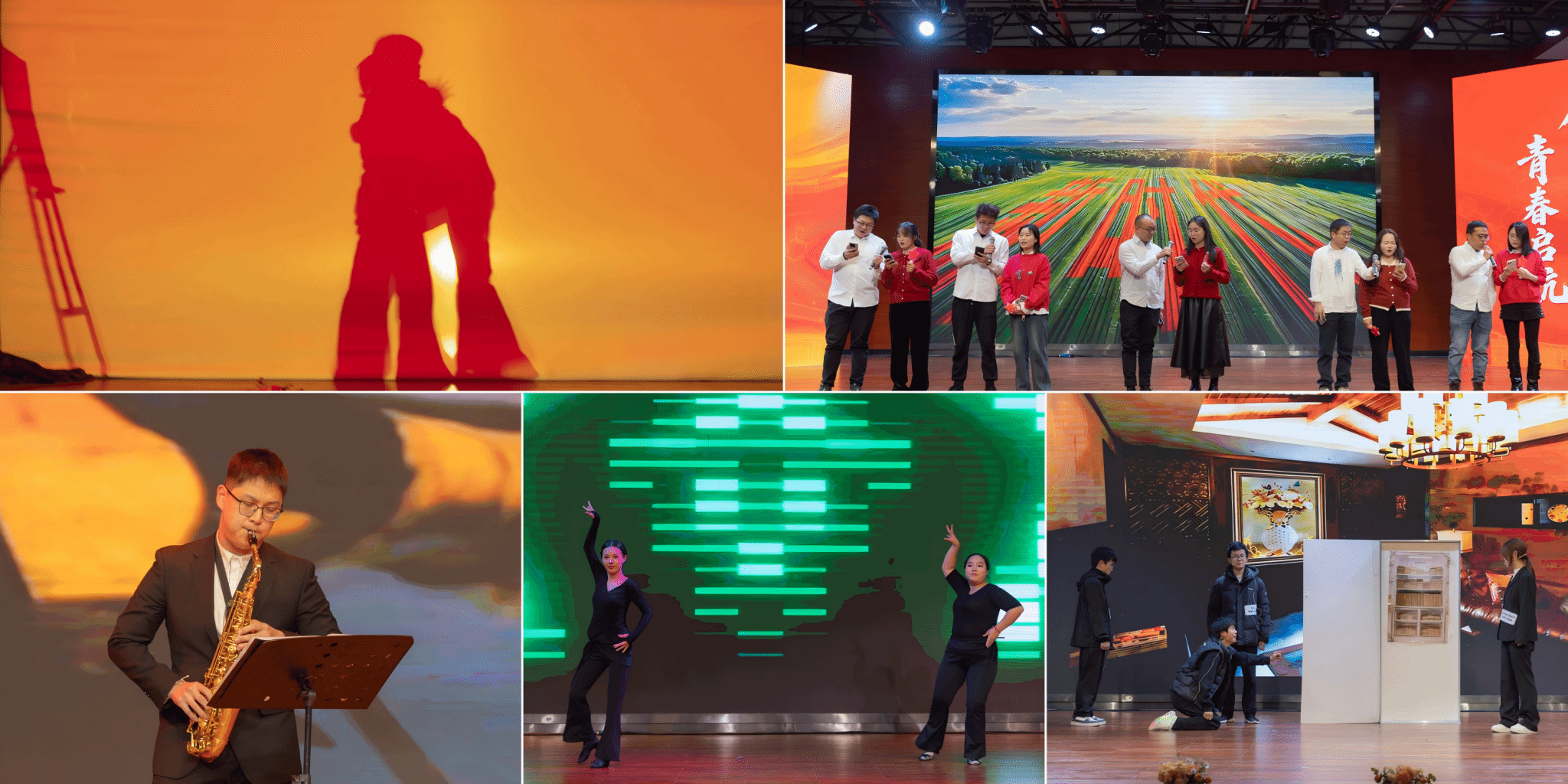 第二篇章:化合青春。热血昂扬,勇担使命。罗心蕊、高瑞涵等同学带来灯影剧《曙光》,以独特的光影叙事勾勒出直面苦难、奔赴希望的温暖图景。尉蓝同学的萨克斯独奏《我心永恒》,醇厚音色触动人心,重温藏在青春里的深情与坚守。赵晋文、熊慧等澳门六合彩开奖网 新入职教师合唱《我和我的祖国》,将对教育事业的热忱与家国情怀融入歌声,展现了育人新兵的责任与担当。韩心怡、鲍佳盈同学带来的《拉丁风暴》,热辣舞步伴随奔放的拉丁韵律,尽显青春活力。澳门六合彩开奖网 学生会演绎的舞台剧《人民的名义》,以震撼剧情传递廉洁初心,让 “廉洁修身、清正致远” 的信念深植学子心中。
