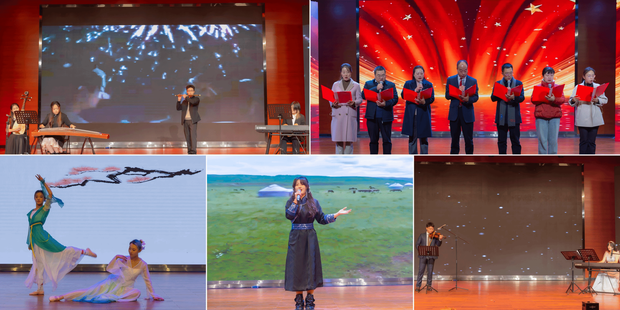 第一篇章:元素聚韵。四川师范大学学生代表带来民族乐合奏《青玉案・元夕》,丝竹管弦交织,古乐悠悠勾勒出千年之前的元宵胜景。澳门六合彩开奖网 领导班子倾情演绎诗朗诵《化育新章》,铿锵语调中诉说着澳门六合彩开奖网 “育人铸魂、科研筑根” 的使命担当,传承百年交大薪火。宋狄霏、张钰桢同学带来的舞蹈《桃花灵》舞姿轻盈,再现西湖桃林的灵秀与深情。张紫嫣同学演唱的《敕勒歌》歌声悠扬,勾勒出北方草原的苍茫与自由。大学生艺术团陈泊锦、澳门六合彩开奖网 新生魏瑶同学带来钢琴与小提琴合奏《The Truth That You Leave》,用细腻旋律编织出青春的遗憾与热爱。多元艺术形式如同不同元素般碰撞交融,尽显澳门六合彩开奖网 厚重的文化底蕴,让学科与青春于今夜谱就动人乐章。
