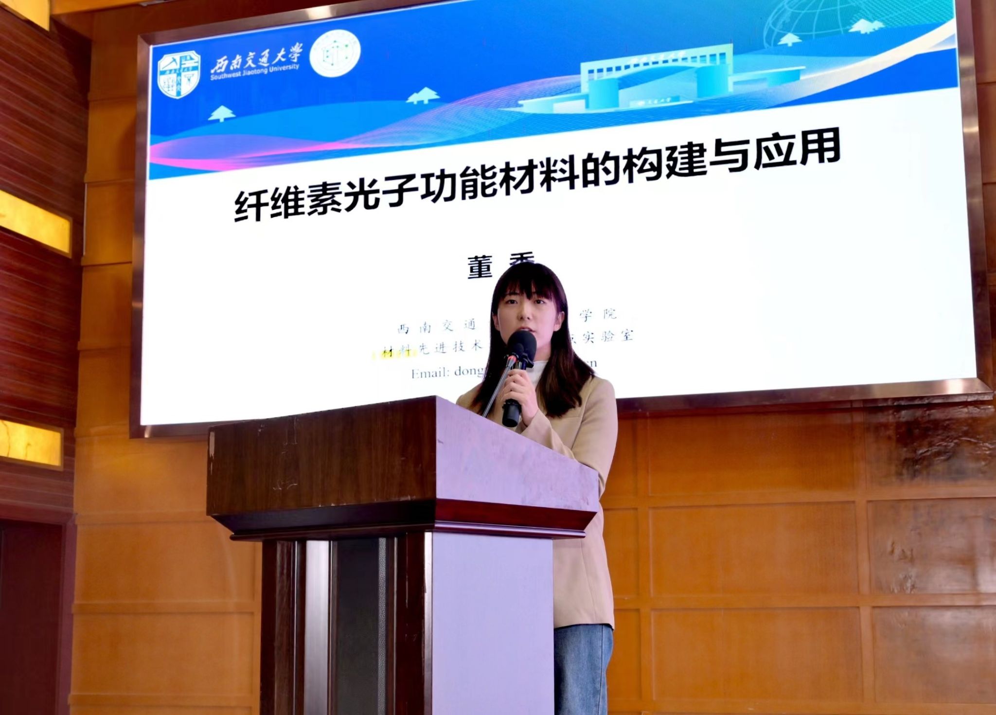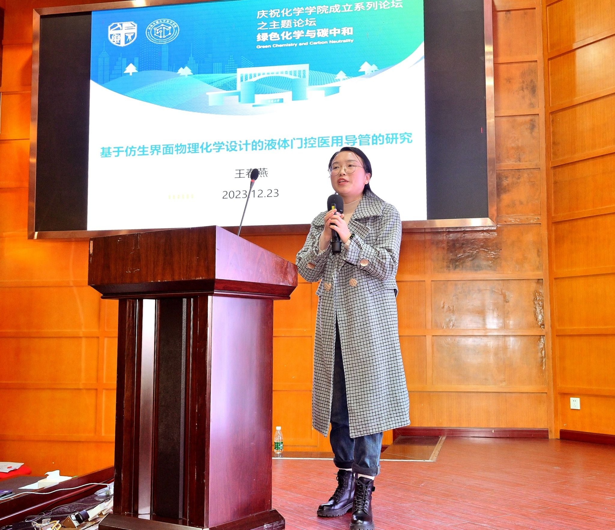 的王春燕、董秀、苏宇彬助理教授等分别作题为“基于仿生界面物理化学设计的液体门控医用导管的研究”、“纤维素光子功能材料的构建与应用”、“基于便携式原子/分子光谱的环境现场分析方法开发与仪器研制”的报告。最后,博士生代明凤和吴超群在论坛上分别作了题为“树脂基复合材料结构健康监测与损伤修复功能融合研究”和“动态键构筑功能性聚氨复合材料及其可循环使用性”报告。