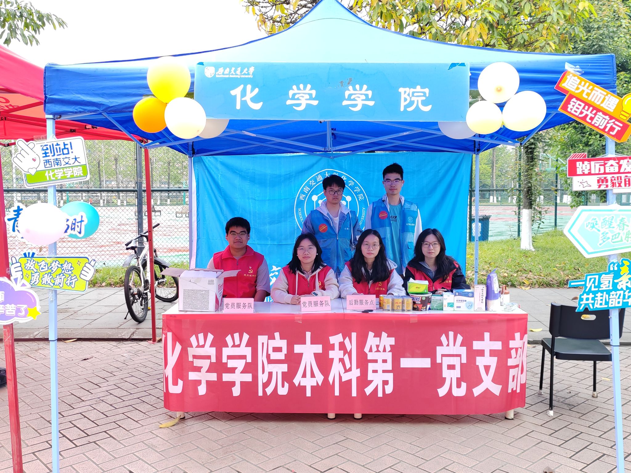 党委书记向仲敏,院长、党委副书记周祚万带队的师生方阵,以矫健的步伐踏入会场,“铌锇铜锌,你我同心!”“钾铀铋砷,加油必胜!”创意元素标语方阵如化学键般紧密联结,在行进间迸发出科学与青春碰撞的璀璨火花,极具学科特色的口号声浪,化作赛场上首个锋芒毕露的“化学反应”。