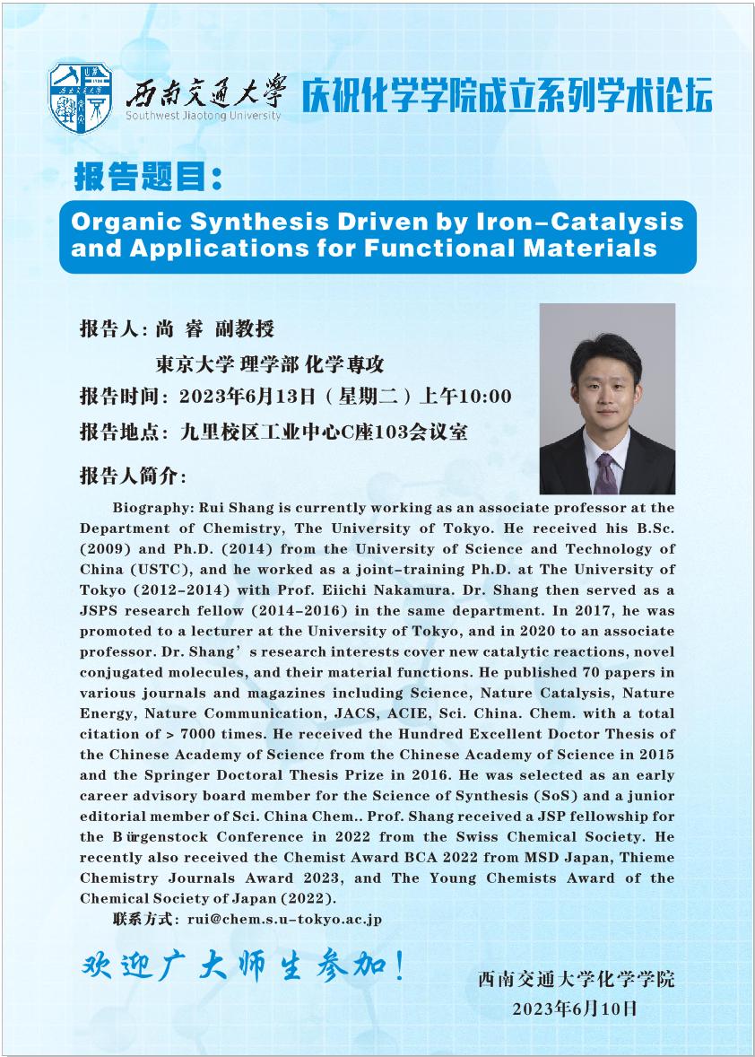 报告题目:Organic Synthesis Driven by Iron-Catalysis and Applications for Functional Materials