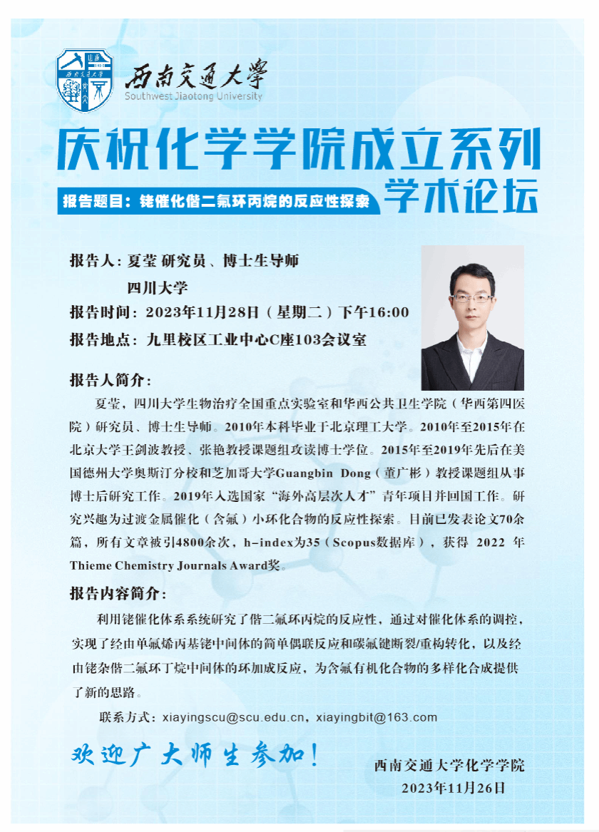 报告地点:西南交通大学九里校区工业园区C座103会议室