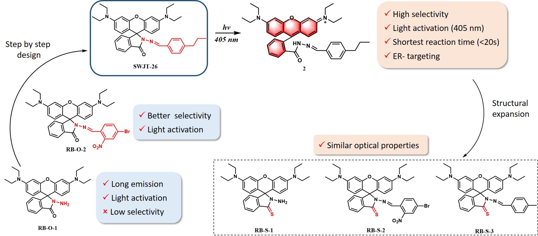 图1. 基于罗丹明B荧光团的光激活探针的设计