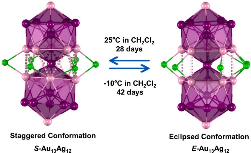 图3. 吉布斯自由能驱动的Au13Ag12团簇的构象转变。