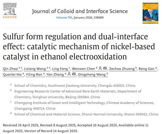 为第一通讯单位、山西师范大学为第二通讯单位发表题为“Sulfur form regulation and dual-interface effect: catalytic mechanism of nickel-based catalyst in ethanol electrooxidation”的研究论文。澳门六合彩开奖查询网站