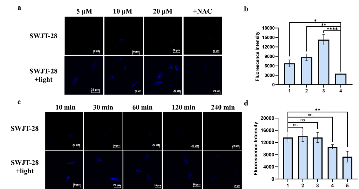 图3.SWJT-28的在HeLa细胞和HT22细胞中的定时成像实验
