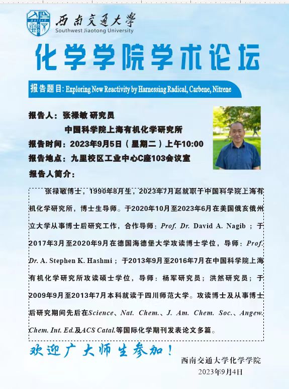 报告人:张禄敏 研究员 中国科澳门六合彩开奖网 上海有机化学研究所