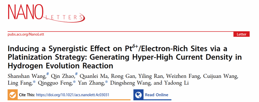 本工作以“Inducing a Synergistic Effect on Ptδ+/Electron-Rich Sites via a Platinization Strategy: Generating Hyper-High Current Density in Hydrogen Evolution Reaction”为题发表在国际知名区期刊《Nano Letters》上。其中澳门六合彩开奖查询网站