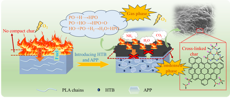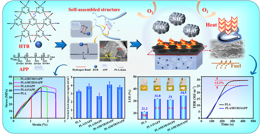 石油基高分子材料的大量使用和堆积给人类生存环境造成了不可忽视的负面影响,因此开发高性能的可生物降解聚乳酸(Polylactic acid, PLA)材料具有重要意义。PLA是一种从玉米、甜菜等作物中提取的脂肪族聚酯,具有良好的生物降解性、生物相容性和优异的机械性能等优点,已成为最具有发展前景的可生物降解材料之一。然而,PLA固有的脆性、易燃性和在燃烧过程中明显的熔滴效应,极大地限制了其在汽车工业、电子电器等工程领域中的应用。因此,有效提高PLA的力学和阻燃性能,并降低其在燃烧过程中熔滴的潜在风险,是扩大PLA应用的关键。