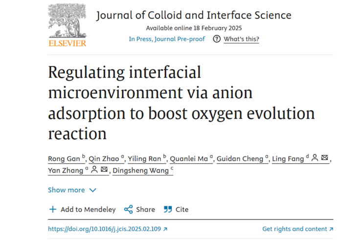 本工作以“Regulating interfacial microenvironment via anion adsorption to boost oxygen evolution reaction”为题发表在国际知名期刊《Journal of Colloid and Interface Science》上。其中西南交通大学2022级硕士研究生甘蓉为第一作者,澳门六合彩开奖查询网站