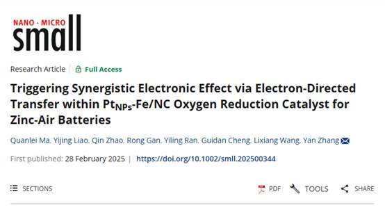 本工作以“Triggering Synergistic Electronic Effect via Electron-Directed Transfer within PtNPs-Fe/NC Oxygen Reduction Catalyst for Zinc-Air Batteries”为题发表在国际知名期刊《Small》上。其中西南交通大学2022级硕士研究生马全磊为第一作者,澳门六合彩开奖查询网站