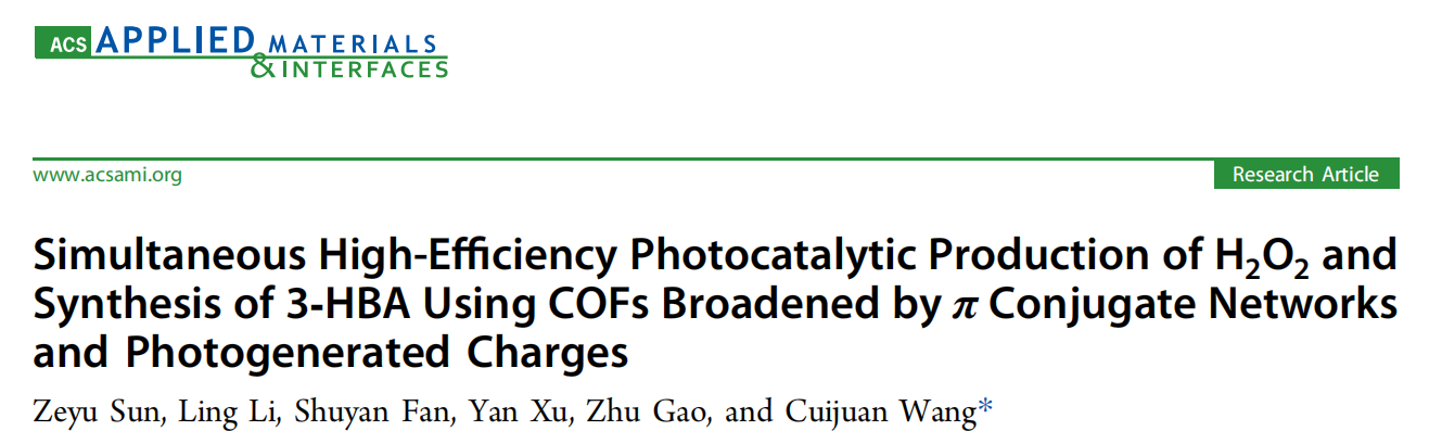 该论文以“Simultaneous High-Efficiency Photocatalytic Production of H₂O₂ and Synthesis of 3-HBA Using COFs broadened by π conjugate network and Photo-Generated Charges”为题发表在材料类国际顶级期刊《ACS Applied Materials & Interfaces》(影响因子:8.3)。其中,澳门六合彩开奖查询网站