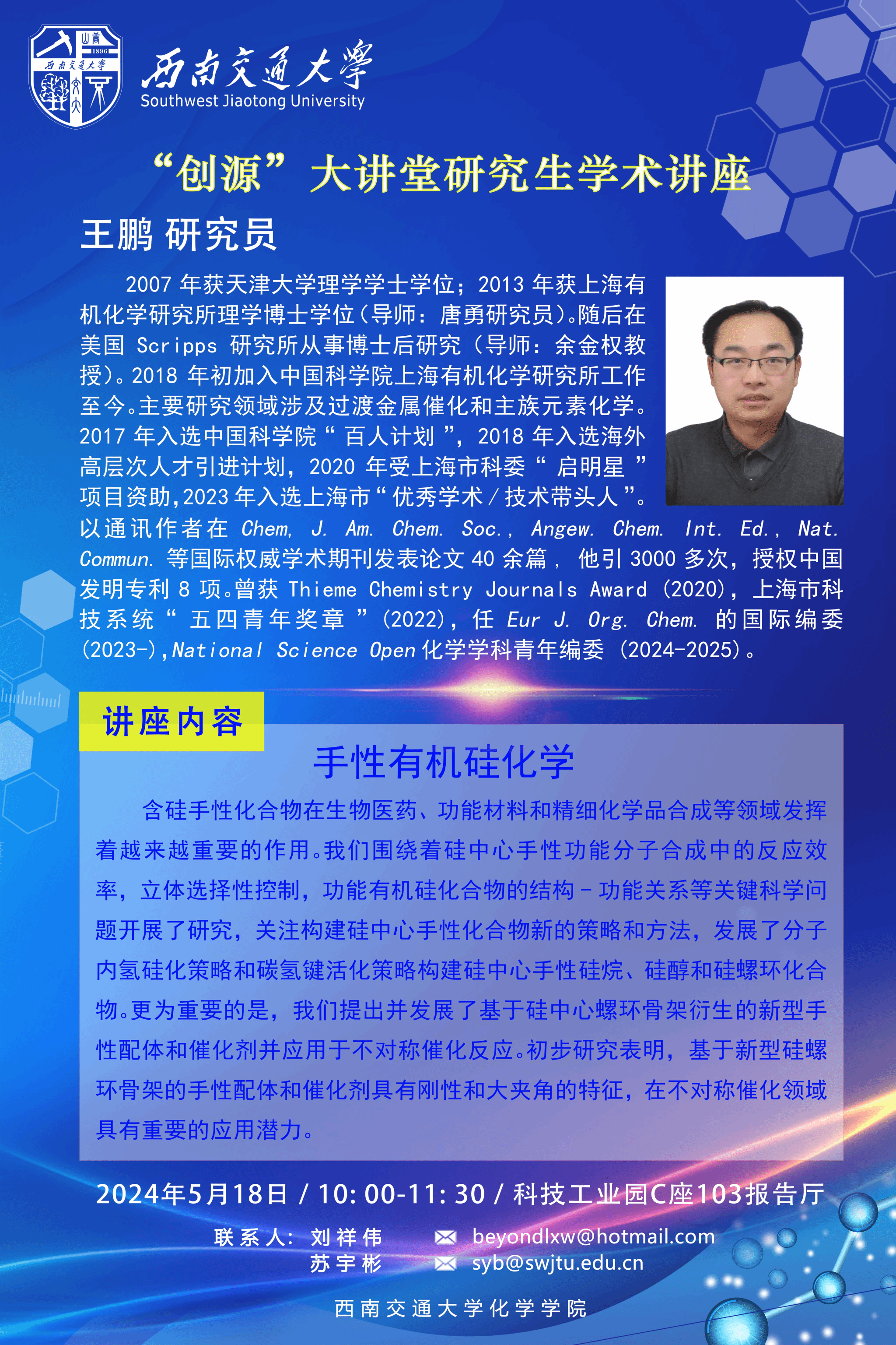 澳门六合彩开奖网 “创源”大讲堂学术讲座:《手性有机硅化学》