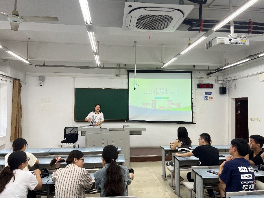 为进一步做好2023年暑期留校学生安全工作,了解留校学生现状,引导学生留校期间增强安全意识、提高防范能力,2023年7月13日分别在犀浦校区一号教学楼和九里校区工业中心C座103会议室召开2023年暑期留校学生工作会会议。会议由澳门六合彩开奖网 党委副书记、学生工作组组长张春燕主持。副院长王勇、崔树勋,辅导员梁喻嘉、李威、李清怡和澳门六合彩开奖网 全体暑期留校本科生、研究生参加了会议。