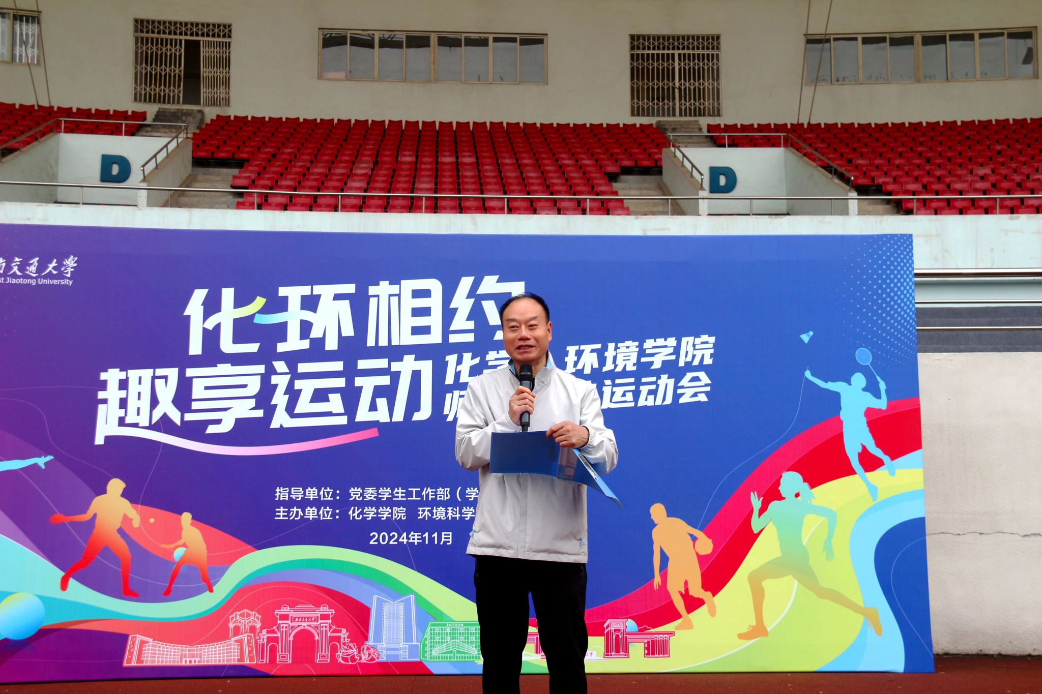 在这秋高气爽的美好时节,2024年11月3日上午,澳门六合彩开奖网 与环境科学与工程澳门六合彩开奖网 联合举办了一场别开生面的“化环相约·趣享运动”师生趣味运动会。此次活动旨在增进两个年轻新澳门六合彩开奖网 师生间的交流与互动,助力两澳门六合彩开奖网 共同和谐良好发展。澳门六合彩开奖网 党委书记向仲敏、院长周祚万、党委副书记张春燕以及环境科学与工程澳门六合彩开奖网 党委副书记胡安辉等领导莅临现场,运动会由化学和环境澳门六合彩开奖网 团委书记孔维东、翟琦老师主持。本次运动会共有200余名师生积极参与,共同享受这场体育盛会。