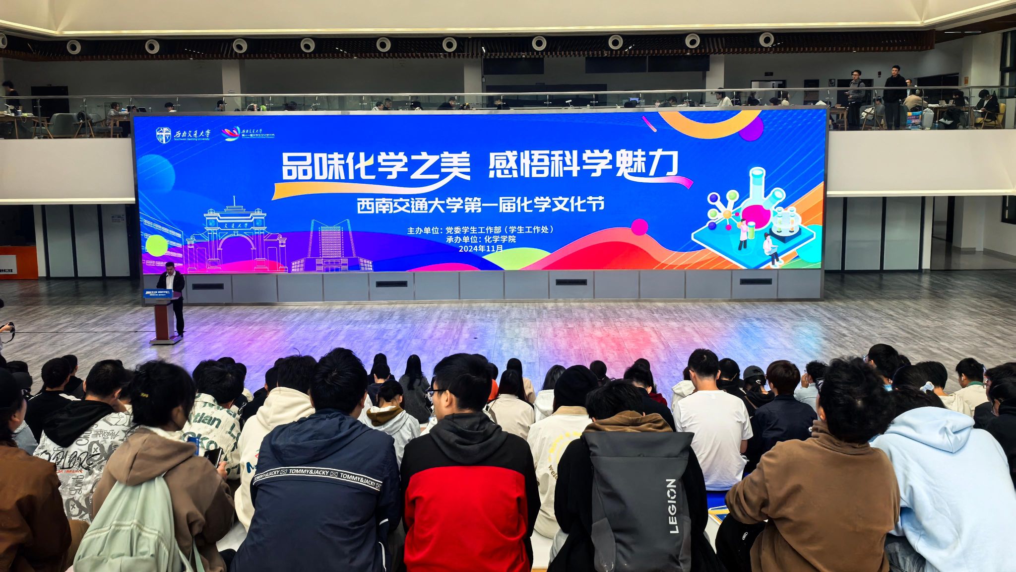 承办的“品味化学之美,感悟科学魅力”西南交通大学第一届化学文化节在犀浦校区三号教学楼隆重举办。现场通过化学科学家精神展览、优秀摄影作品展览、趣味实验体验、化学知识竞答等形式,深入挖掘化学学科蕴含的美育价值与功能,引导交大师生感悟化学之美,本次活动吸引了600余名师生热情参与,共同体验这场充满科学精神与艺术气息的化学盛宴,为我校推动形成热爱科学、崇尚科学的校园风尚提供了良好助力。