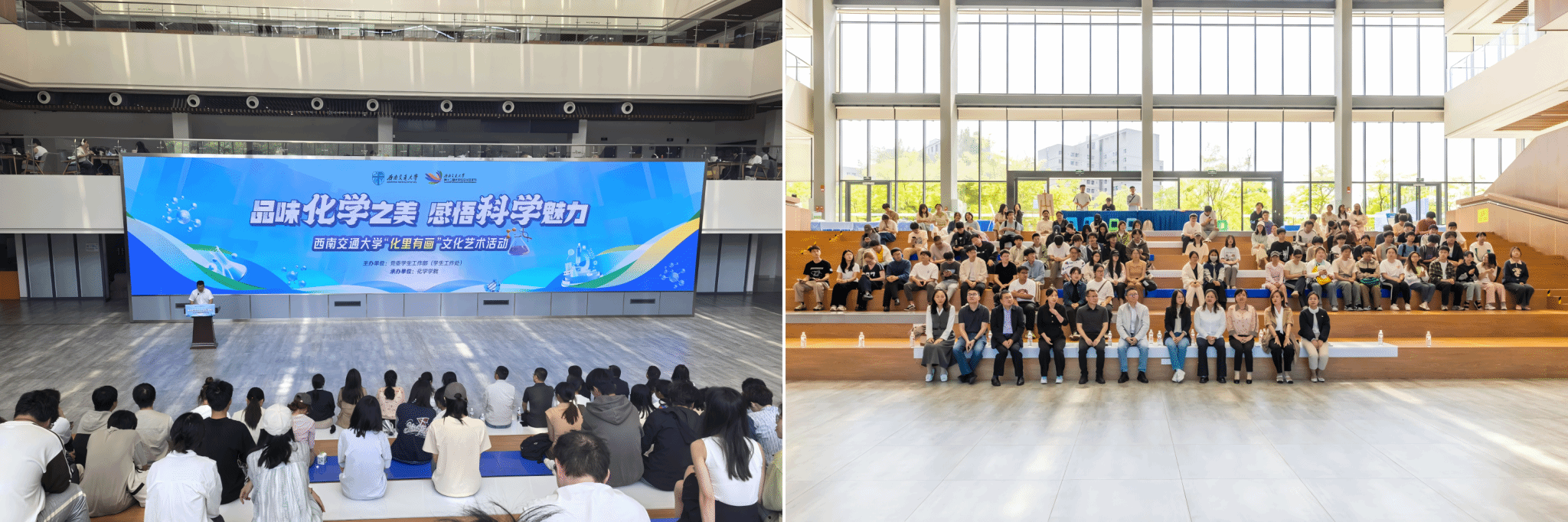 4月24日下午,西南交通大学“化里有画”文化艺术系列活动在犀浦校区三号教学楼举行,通过挖掘学科蕴含的美育价值与功能,引导交大师生感悟科学魅力。活动现场气氛热烈,党委学生工作部、校团委、教务处、国有资产与实验室管理处(分析测试中心)、澳门六合彩开奖网