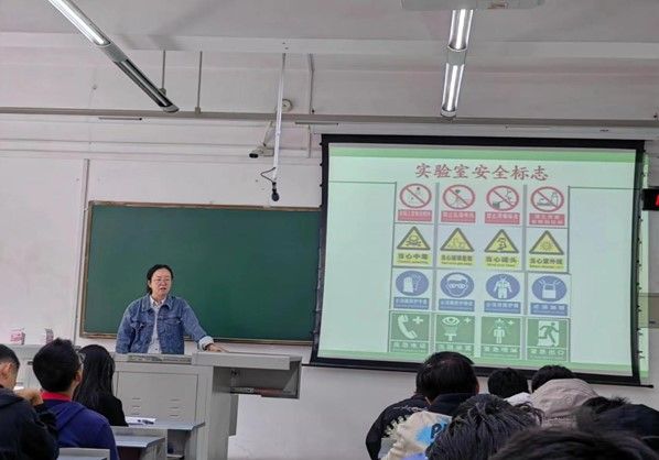 最后,江南屏老师给同学们讲解实验室里面的危险化学品,各种危险源,让同学们充分认识危险化学品的危害以及对应的处理方法,能够认识到哪些是危险的物品,让同学们安全又有保障地开展各项化学实验。
