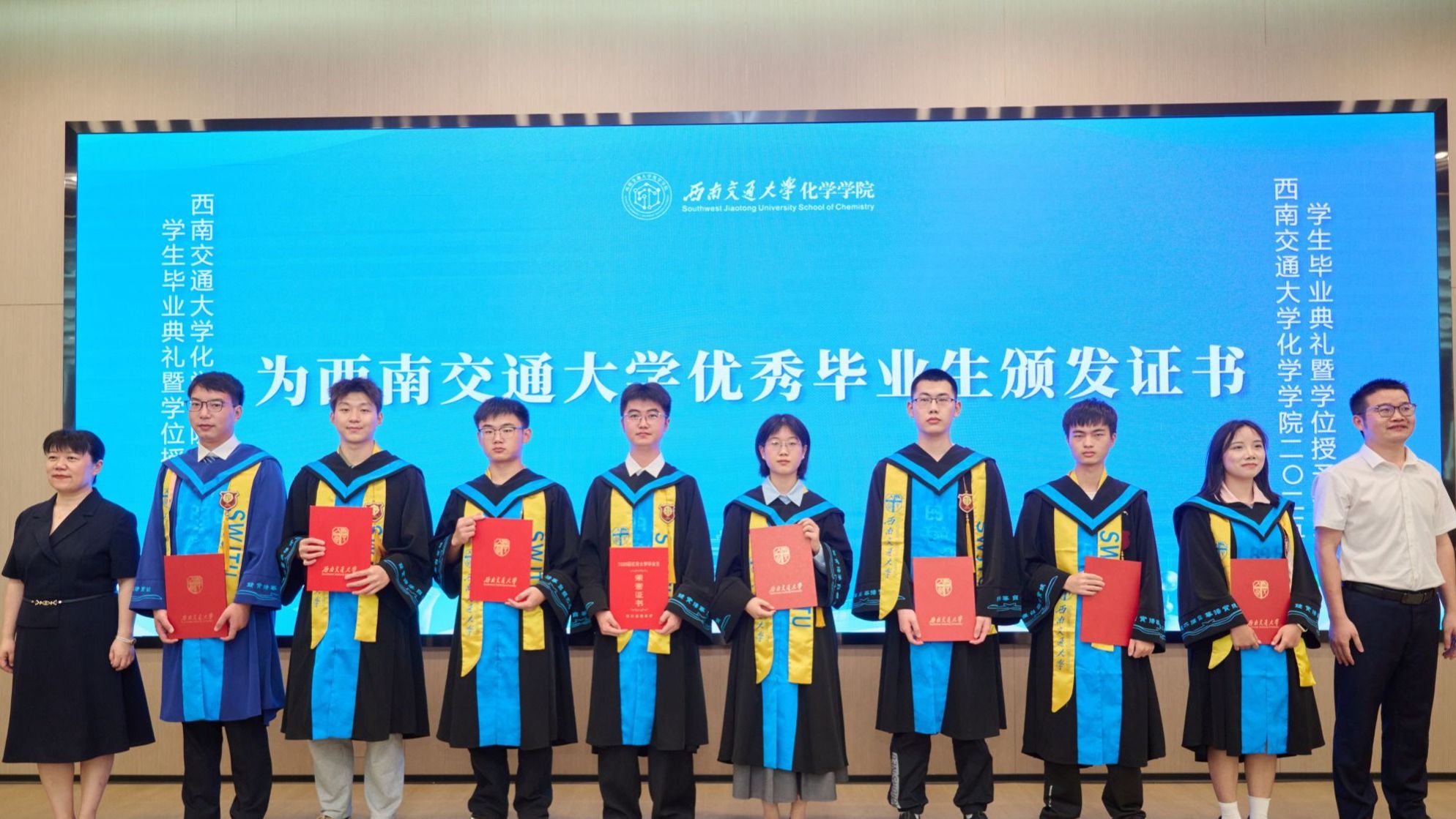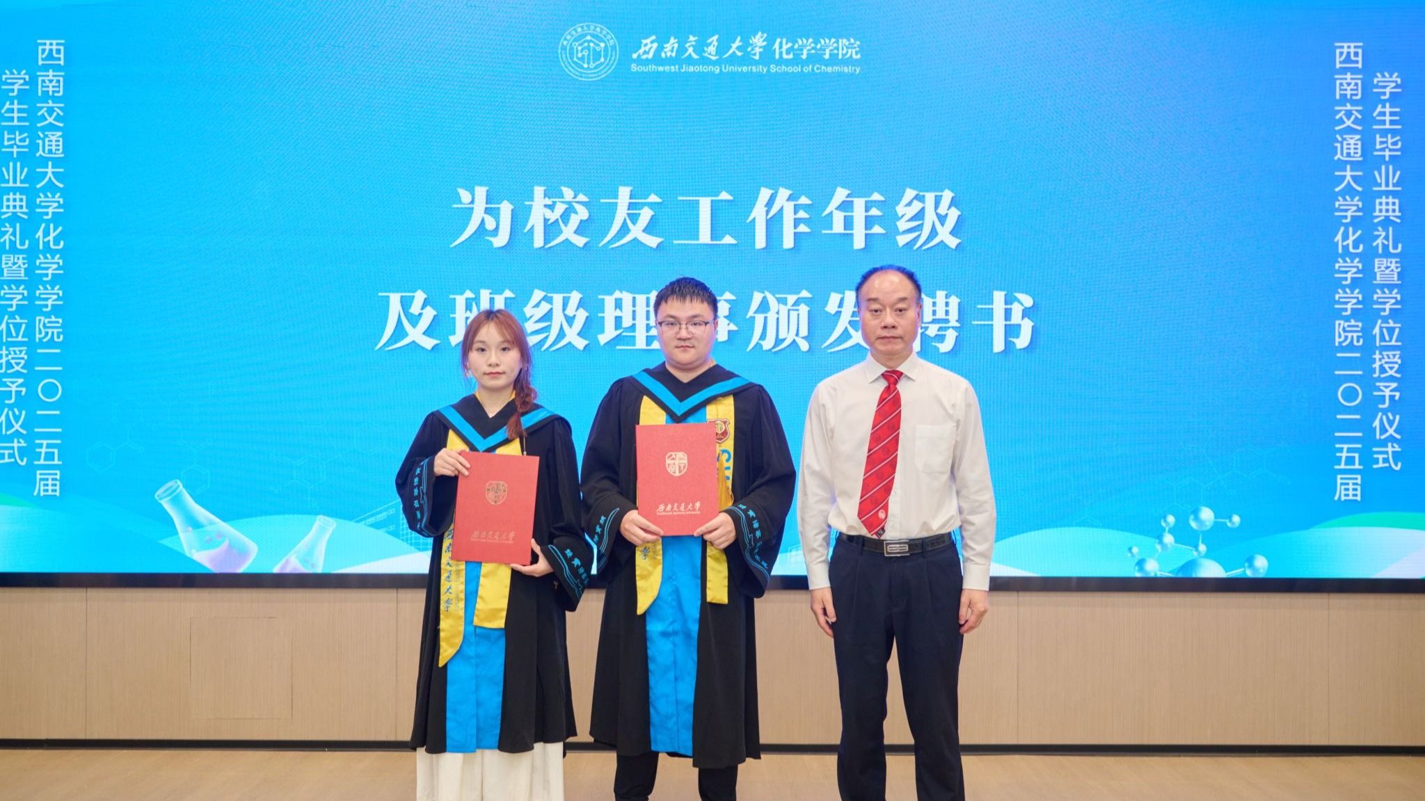王雅雯副院长、郑剑峰院务委员为西南交通大学优秀毕业生颁奖。