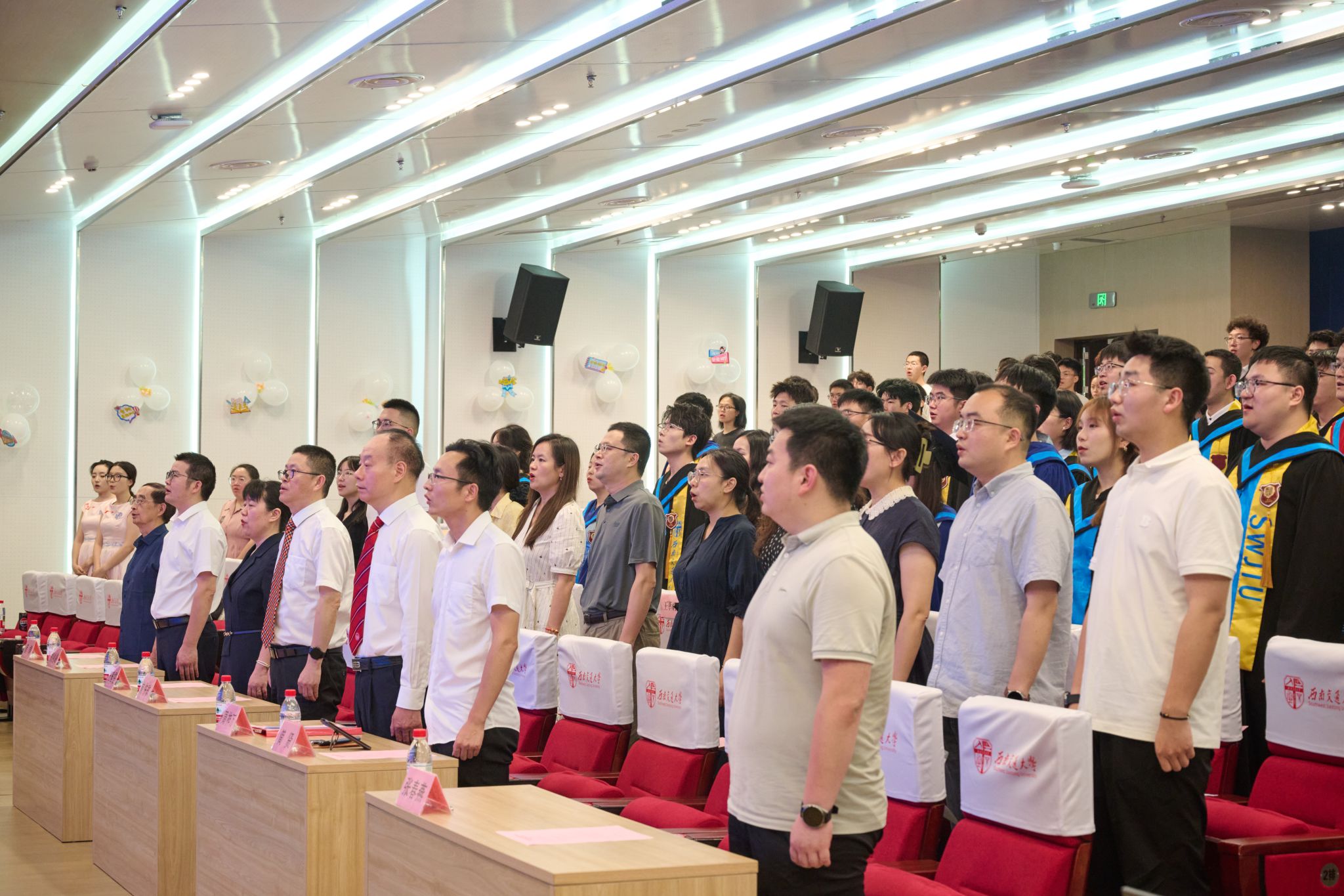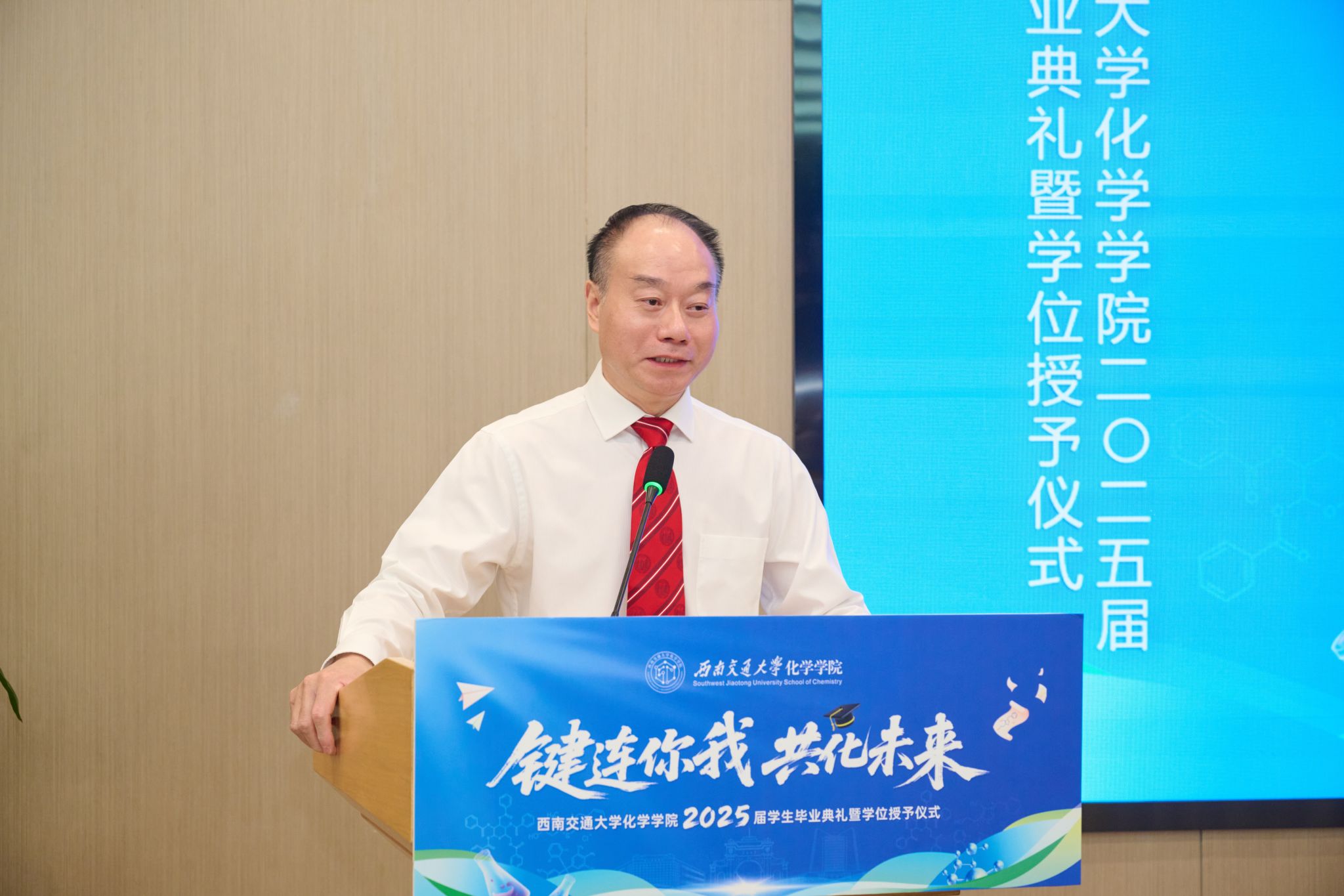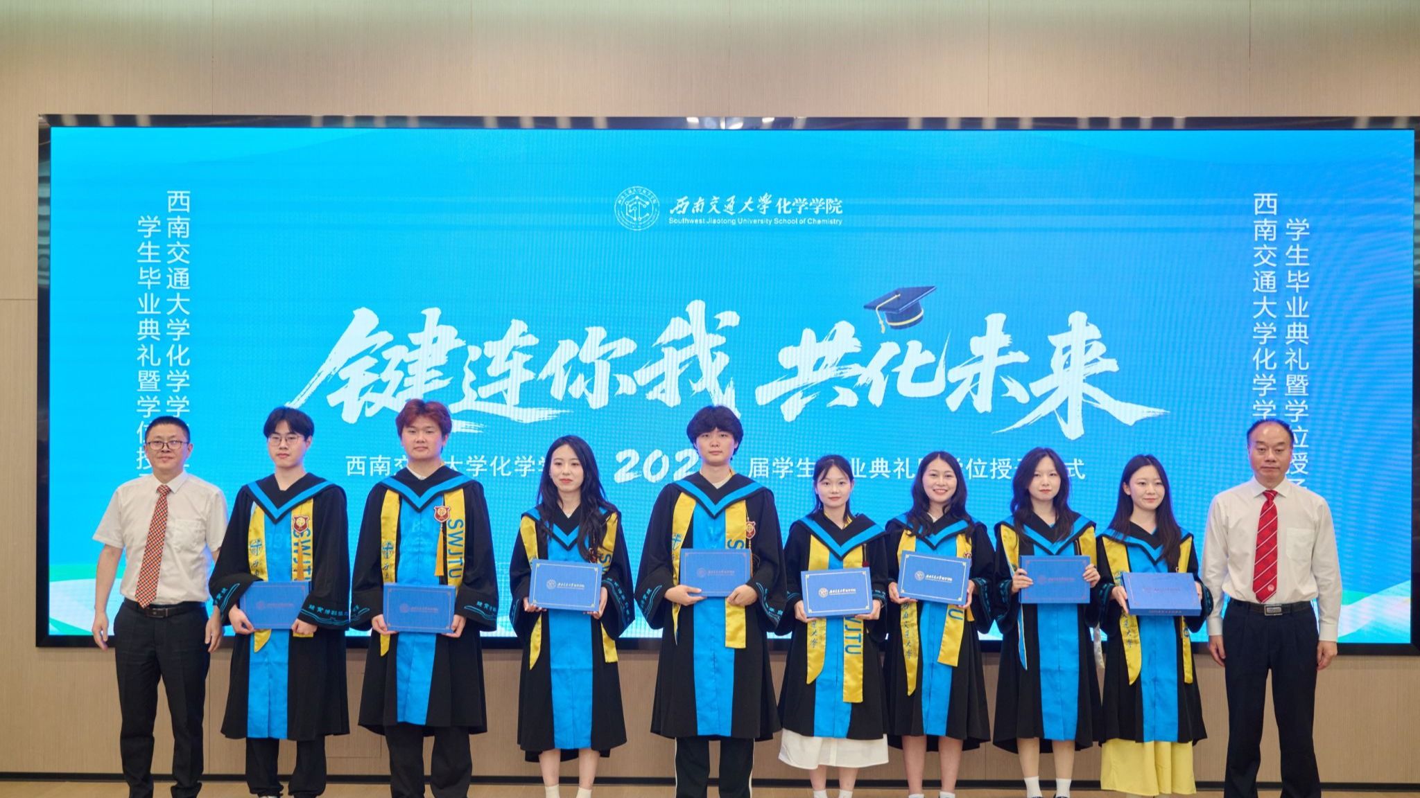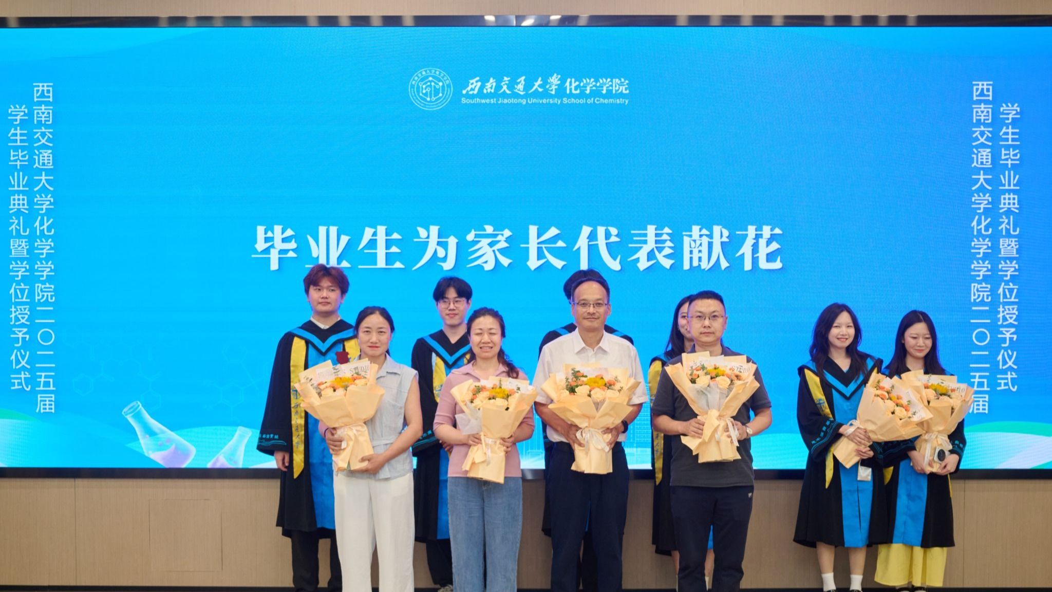 举行了2025届学生学位授予仪式。周祚万院长逐一为2025届博士毕业生、硕士毕业生、本科毕业生授位。毕业生们依次上台接受院长拨穗授礼,并合影留念。