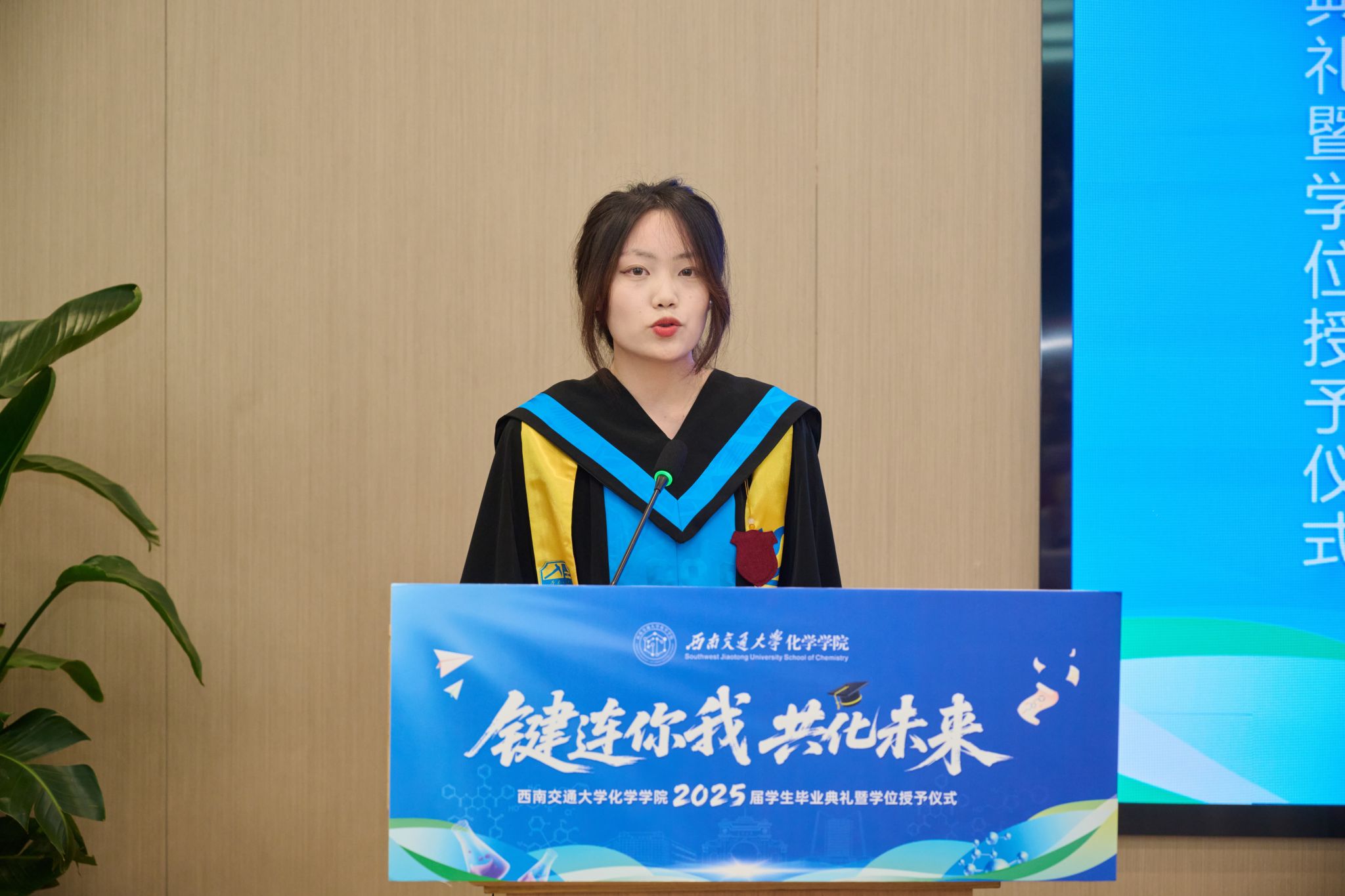本科毕业生代表汪盈和研究生毕业生代表赵芹也先后上台发言。她们回顾了大学四年的点点滴滴,表达了对母校和老师的感激之情,同时也对未来的生活充满了期待和憧憬。