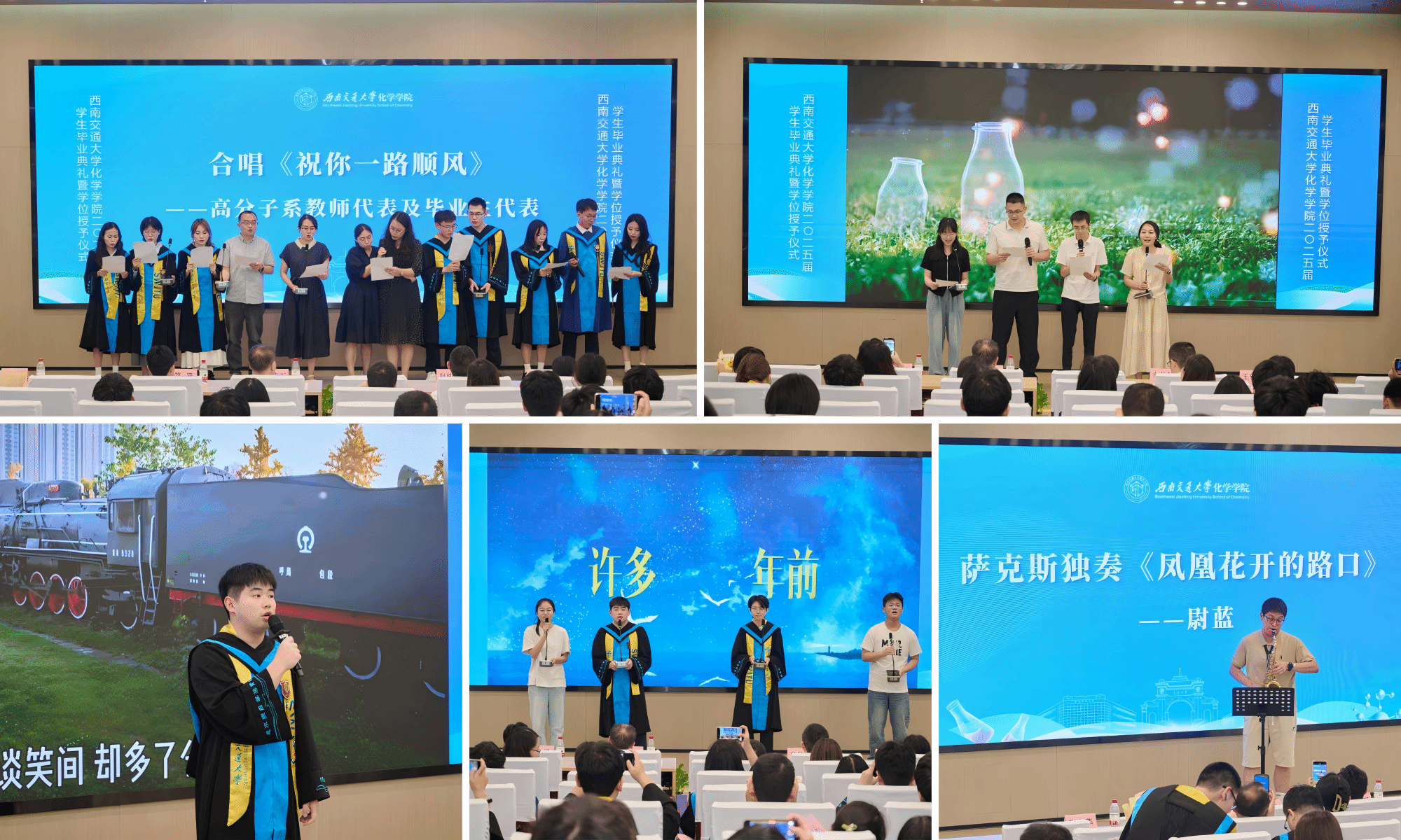 举办的不仅是毕业典礼,更是为同学们送上的“祝福礼”“启程礼”。在典礼接近尾声之际,高分子系教师代表与毕业生代表共同合唱了《祝你一路顺风》,表达了师生之间的深厚情谊;教师代表们带来的诗朗诵《化育芳华,启程如诗》,展现了澳门六合彩开奖网