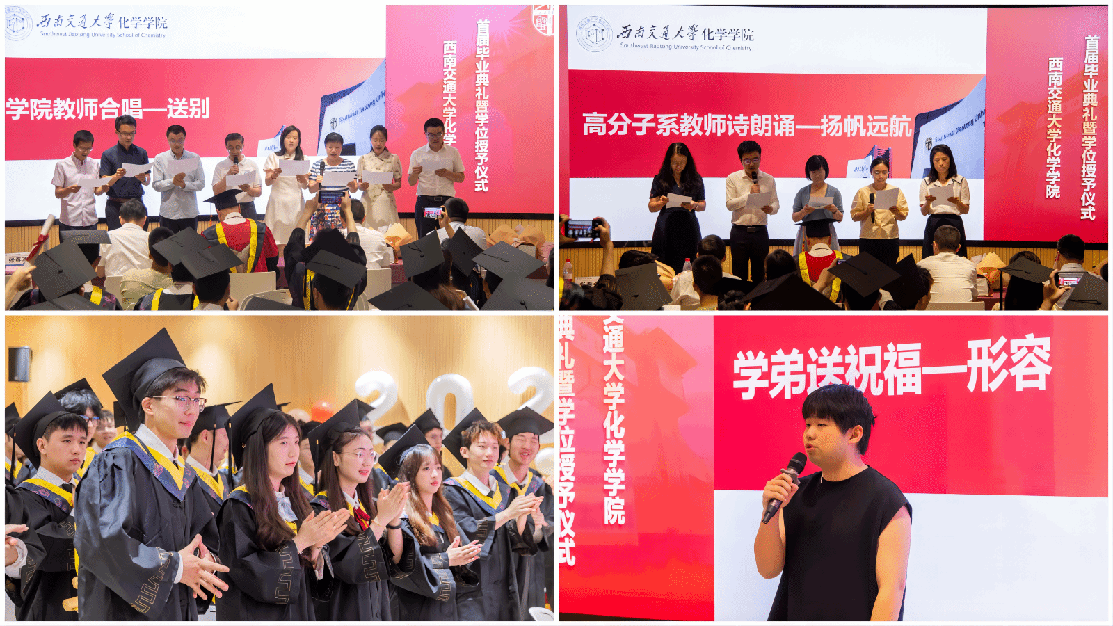 举办的不仅是毕业典礼,更是为同学们送上的“祝福礼”“启程礼”。在典礼接近尾声之际,高分子系教师为同学们原创了诗朗诵《扬帆远航》;2021级本科生王浩宇同学为学长学姐们送上歌曲《形容》;最后,管棣老师带领澳门六合彩开奖网
